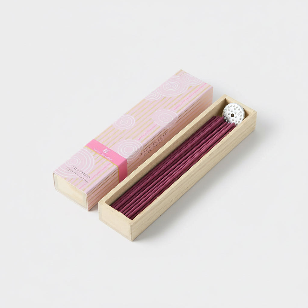 This incense offers a delicate and refined aroma, reminiscent of a serene cherry blossom tree in full bloom. Its subtle sweetness and crisp freshness capture the deep essence of traditional Japanese florals.