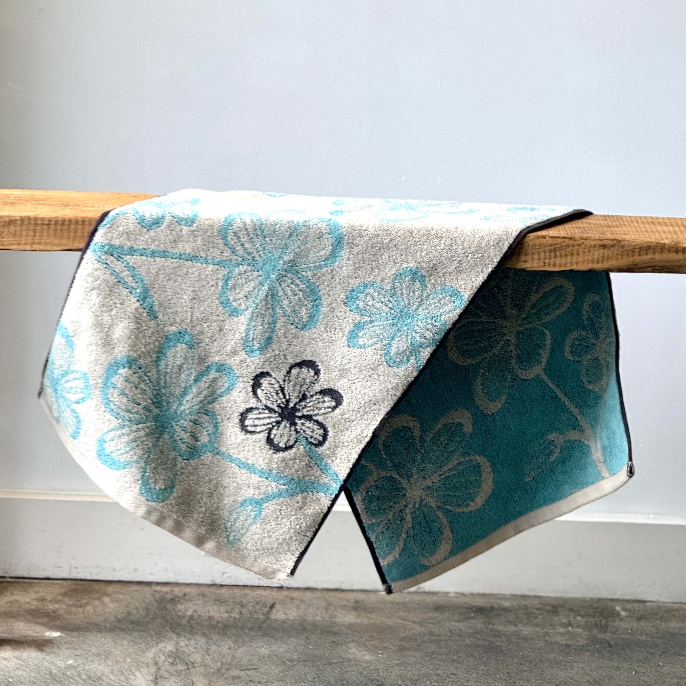 Flor Hand Towel in Blue & Ivory by Murakami Pile, from Imabari, Japan