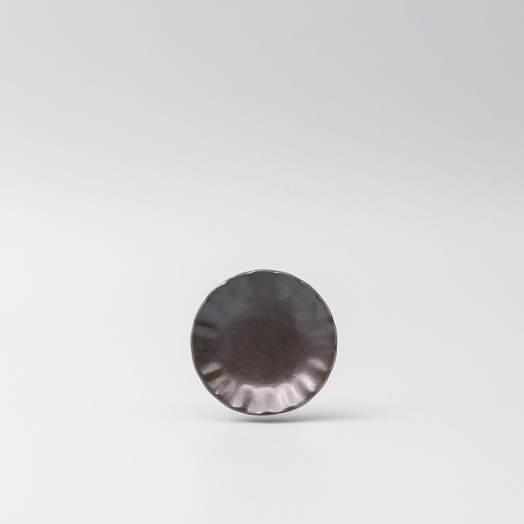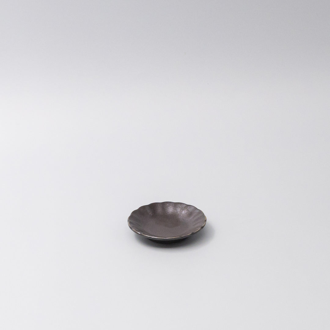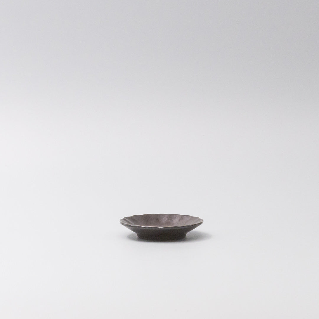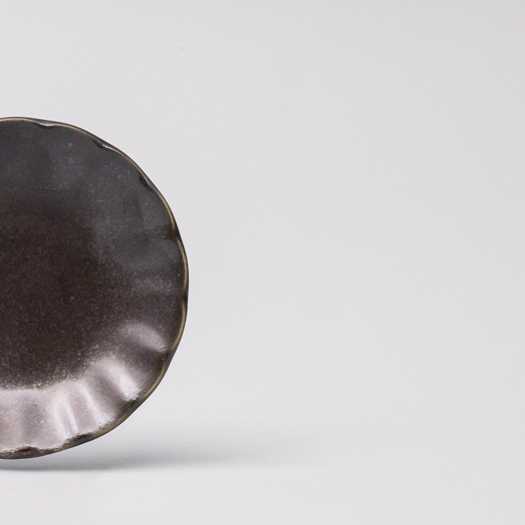 Featuring a gentle scalloped sauce dish in a beautiful sunburst black glaze. Made of 'Minoyaki' porcelain, fired at a high temperature and hand finished.