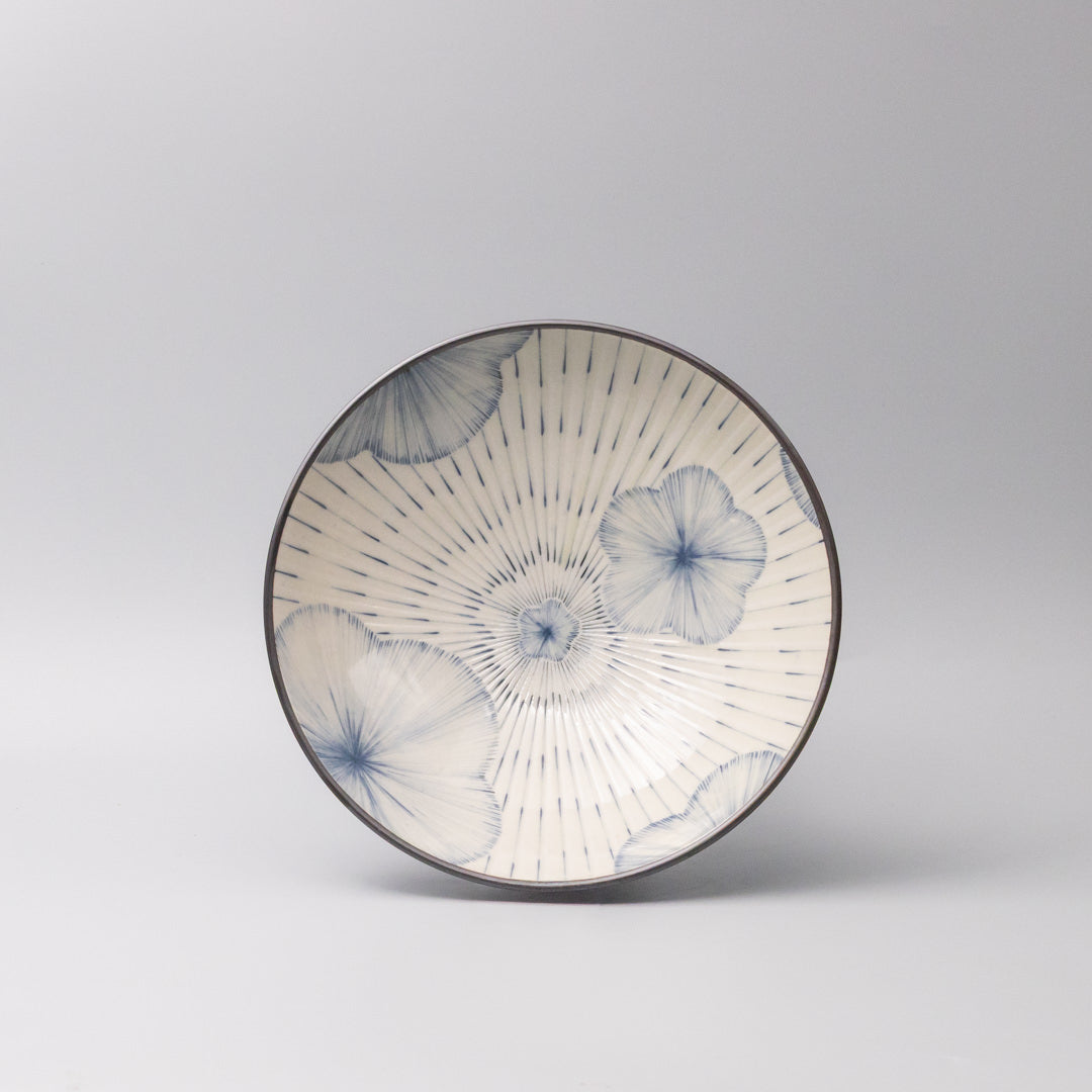 Featuring hand painted floral brush work in soft indigo on an ivory glaze. Made of 'Minoyaki' porcelain, fired at a high temperature and hand finished in Japan.