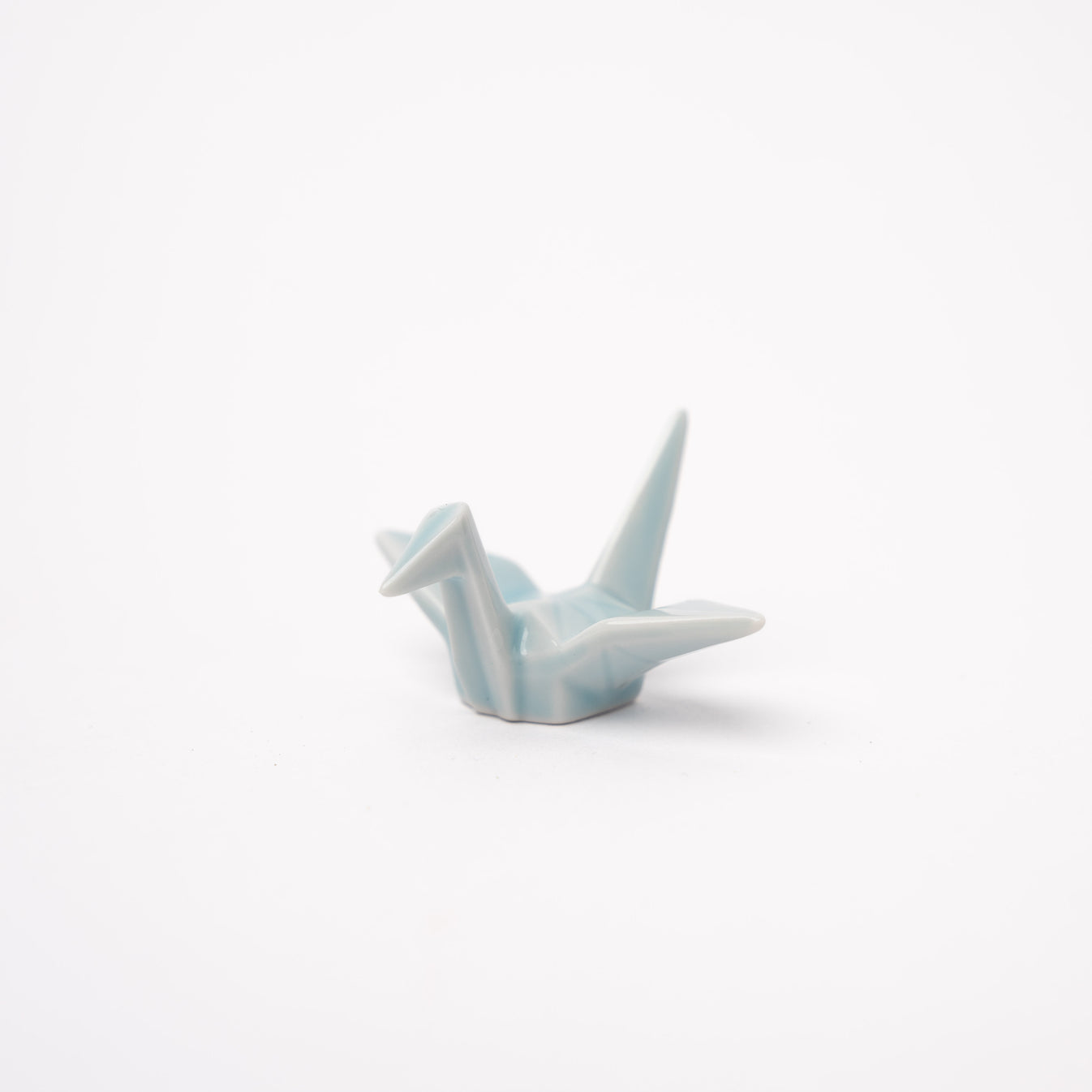 Japanese origami crane chopstick rest in light blue glaze. Made of 'Minoyaki' porcelain, fired at a high temperature and hand finished.