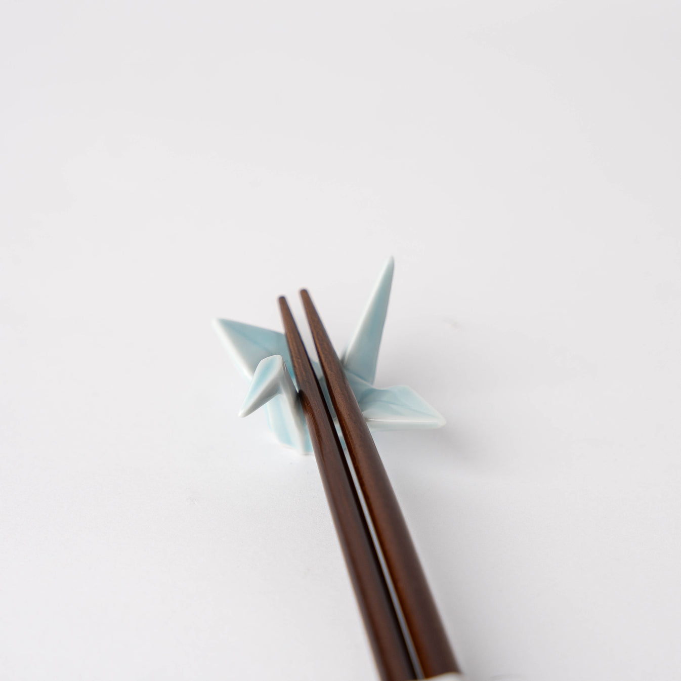 Origami crane chopstick rest in light blue glaze