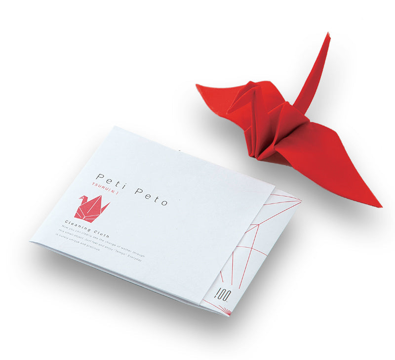 The Peti Peto Red Origami Crane Lens Cloth is a compact polyester cleaner designed to clean eyeglass lenses, IPad, Tablet, phone and TV screens. Its pleated polyester fabric utilises shape-memory technology, allowing it to return to its original origami crane form after use. Inspired by the Latin word "petit," meaning small or pet, this charming folded cloth serves as a convenient and familiar companion for keeping your lenses spotless wherever you go.