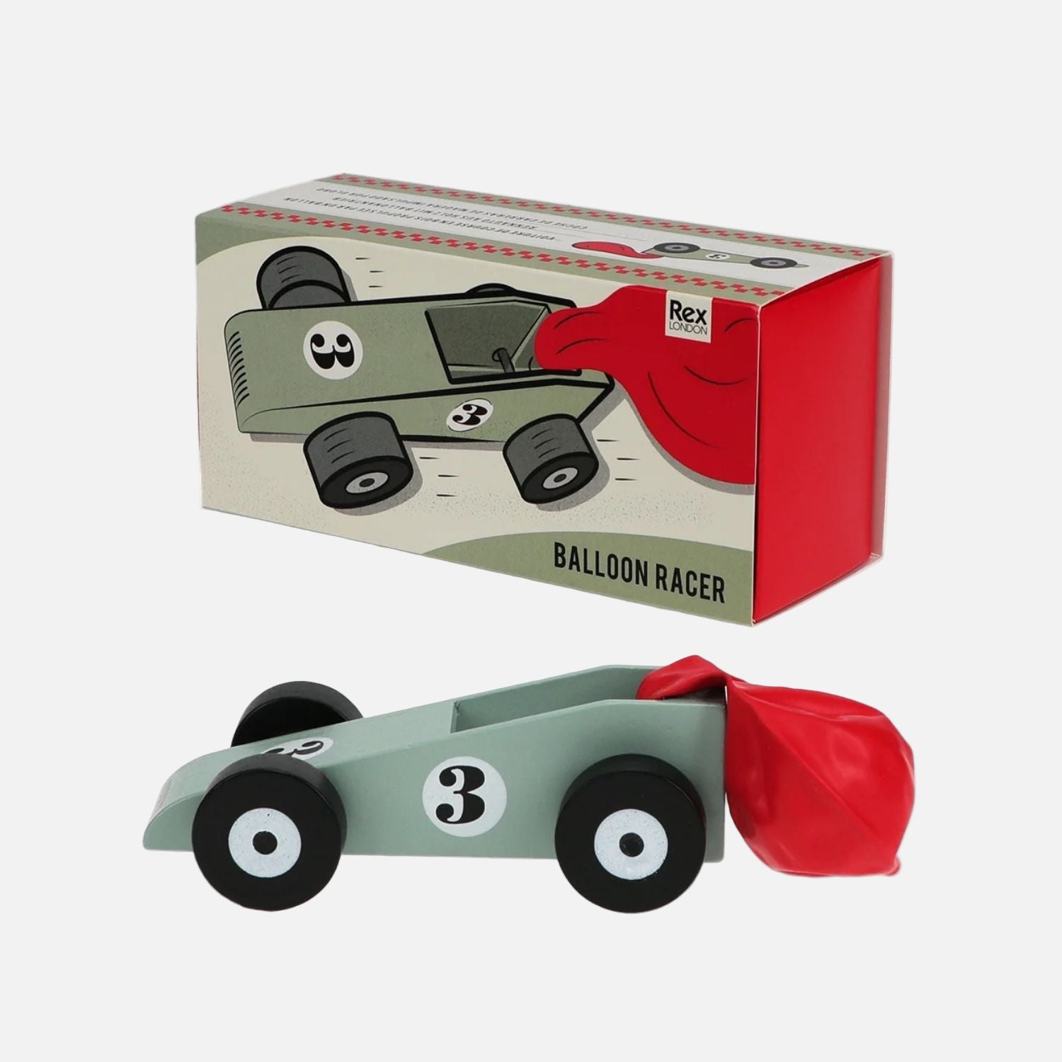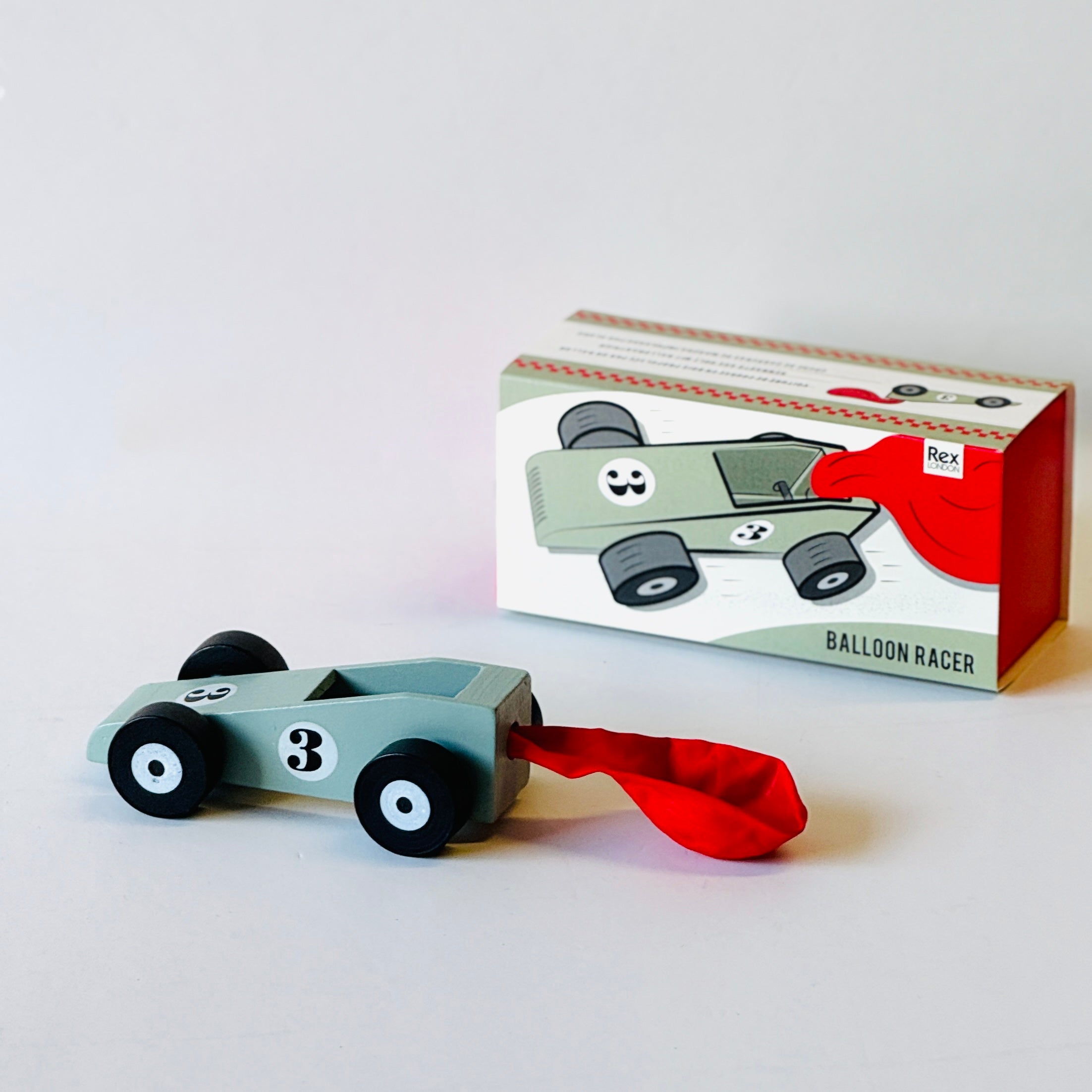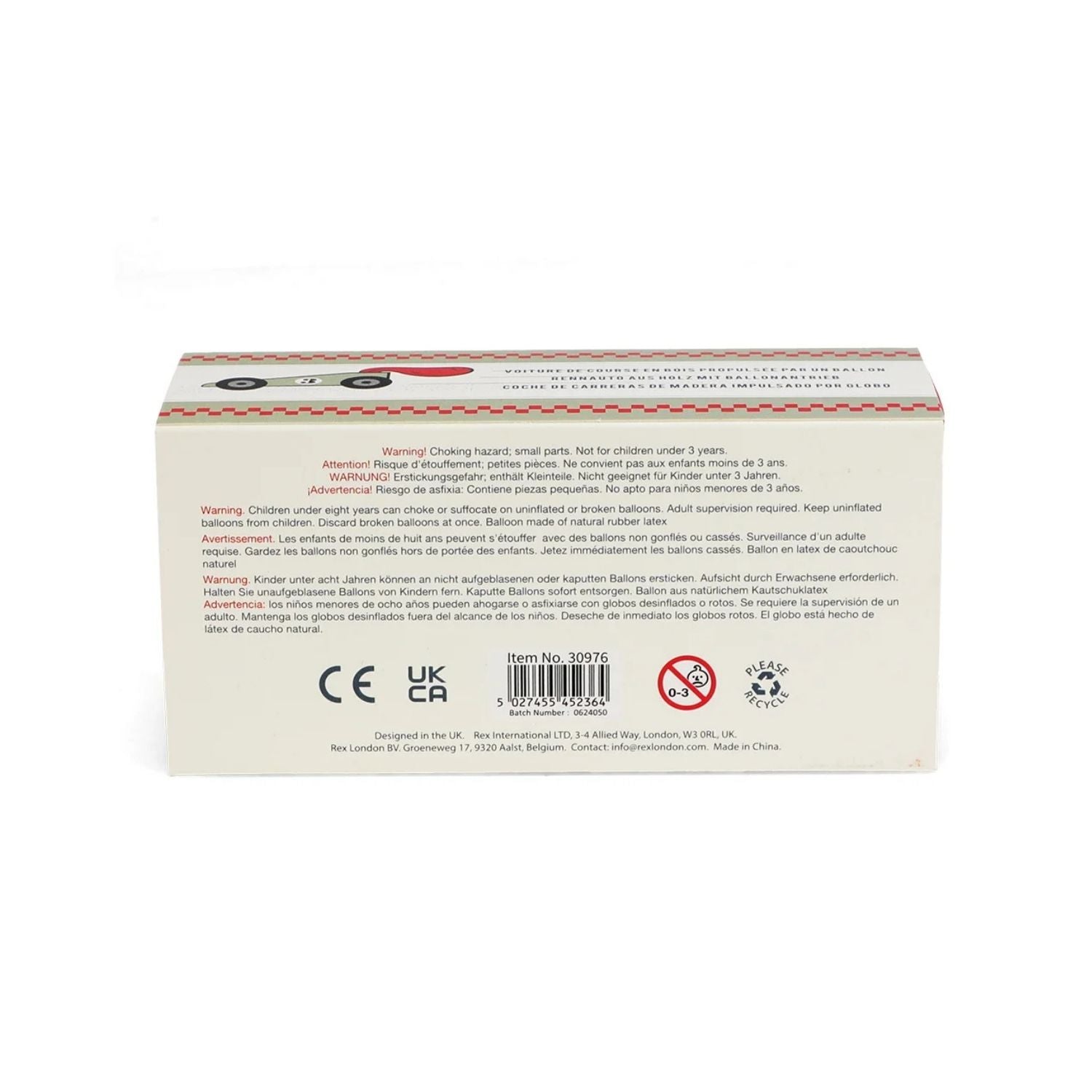 This classic wooden car toy moves using the force of air. Inflate the built-in balloon, set the car on a smooth surface, and watch it speed ahead! You can also detach the balloon to push the car manually for interactive play.