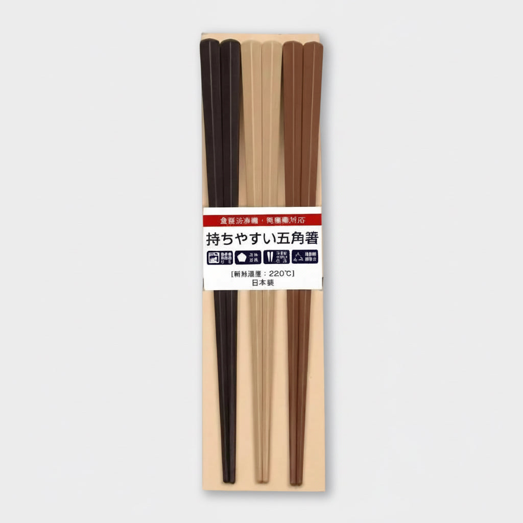 This set includes 3 pairs of reusable chopsticks in 3 different colours. The pentagonal shape of the chopsticks makes them comfortable to hold and the non-slip tips ensure a secure grip. With a moderate weight, these chopsticks can be comfortably used by a wide range of individuals.