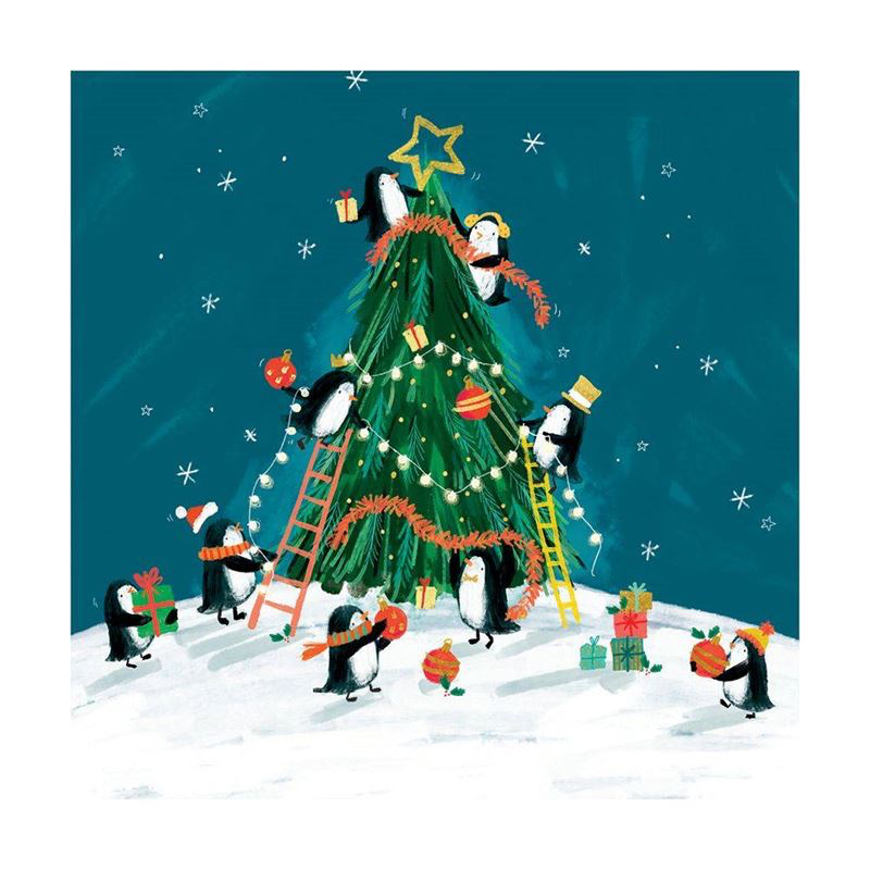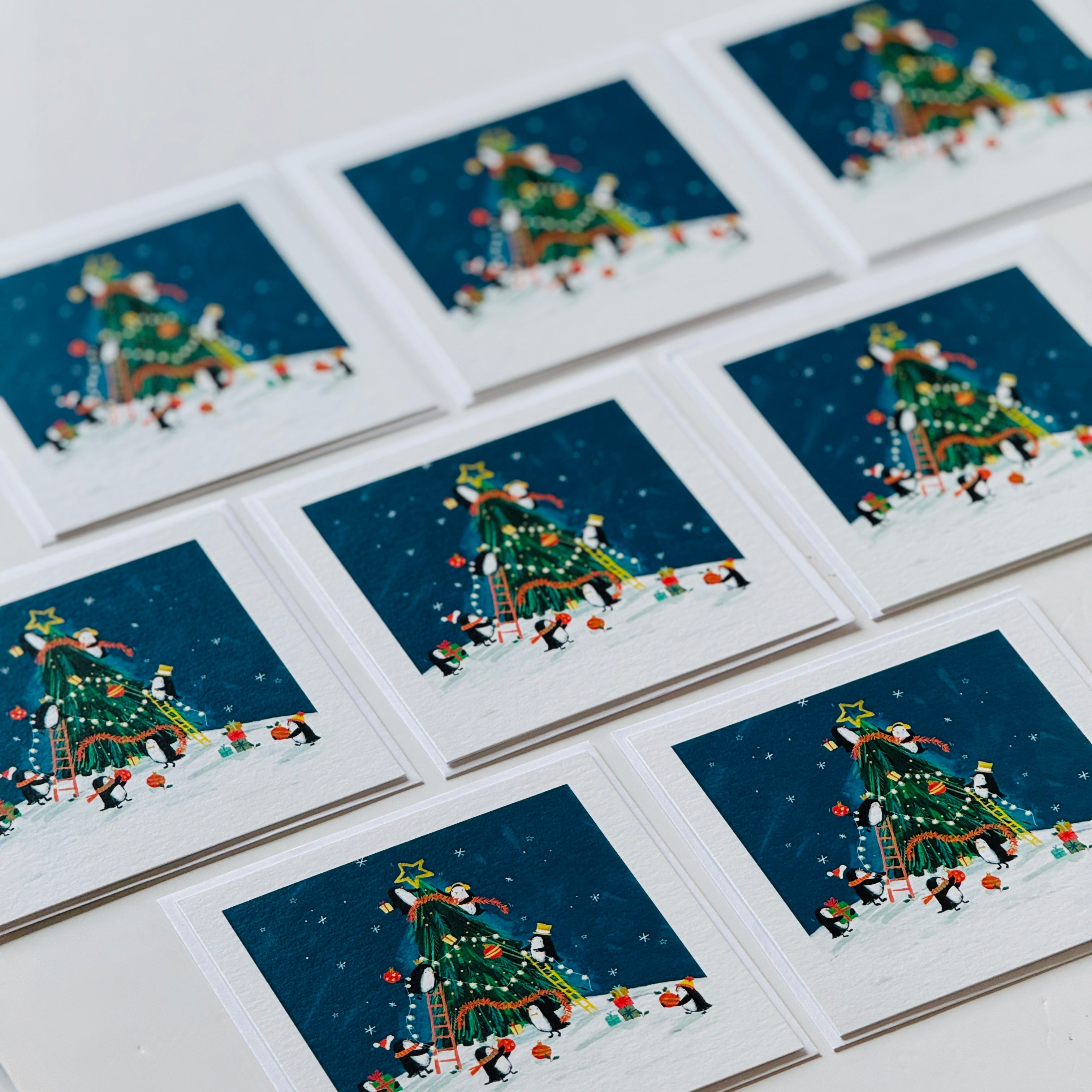 Penguins decorating the tree Christmas cards by Museum & Galleries