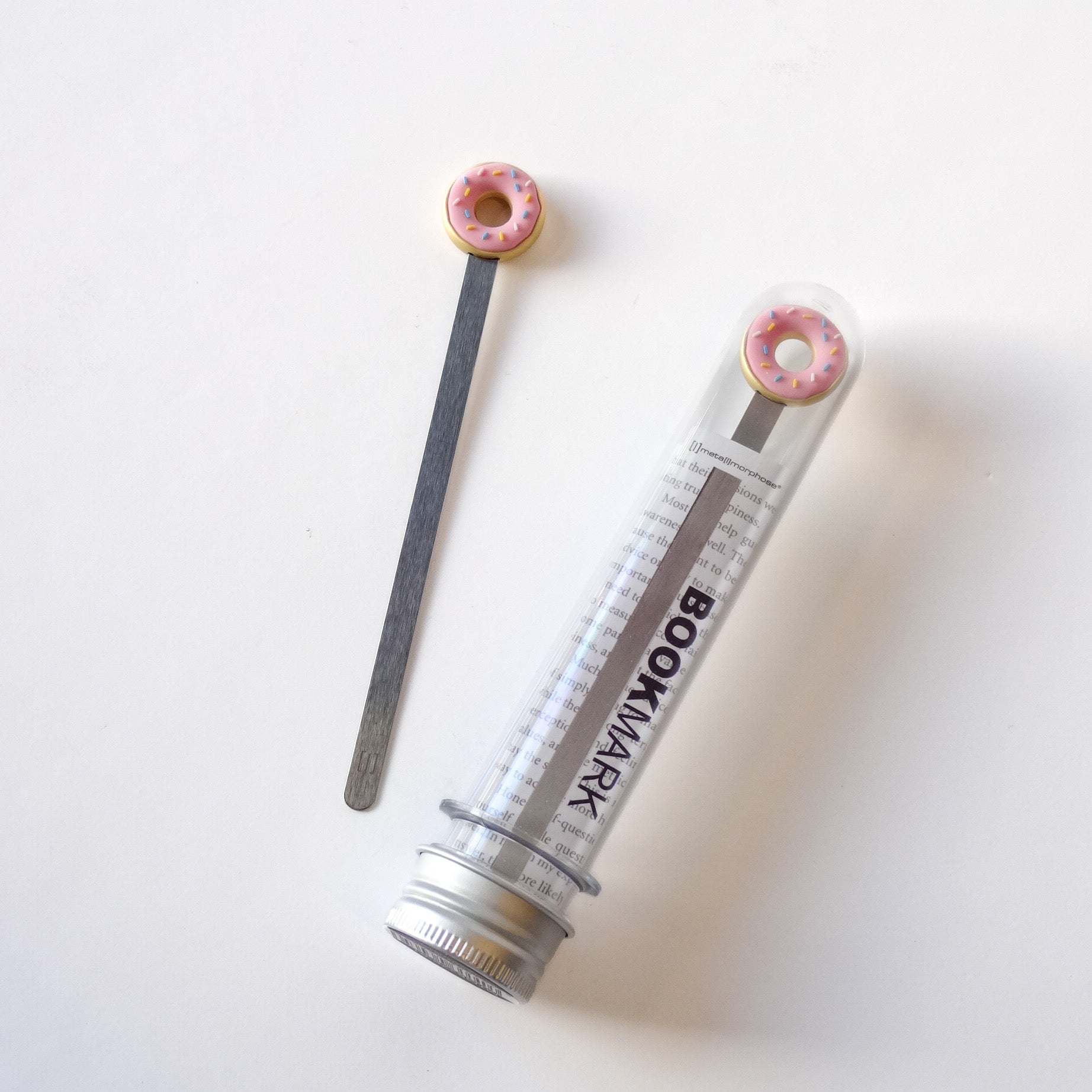 Enhance your reading experience with our exclusive donut bookmark. A yummy sweet 3D pink donut with sprinkles sits above your book, making a statement while keeping your page. A perfect stocking filler, it comes packaged in a reusable tube.