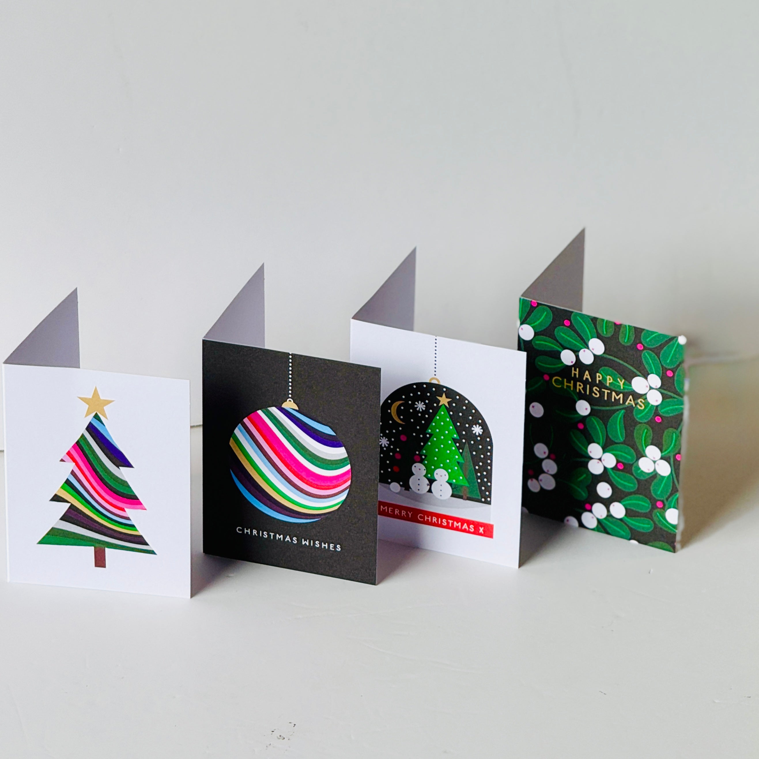 Celebrate the festive season with the Evergreen Mini Cube Christmas Cards by Rachel Ellen. This set includes 20 charming mini cards—five of each of four unique designs—each paired with its own envelope. Perfect for spreading holiday cheer in a personal and stylish way.