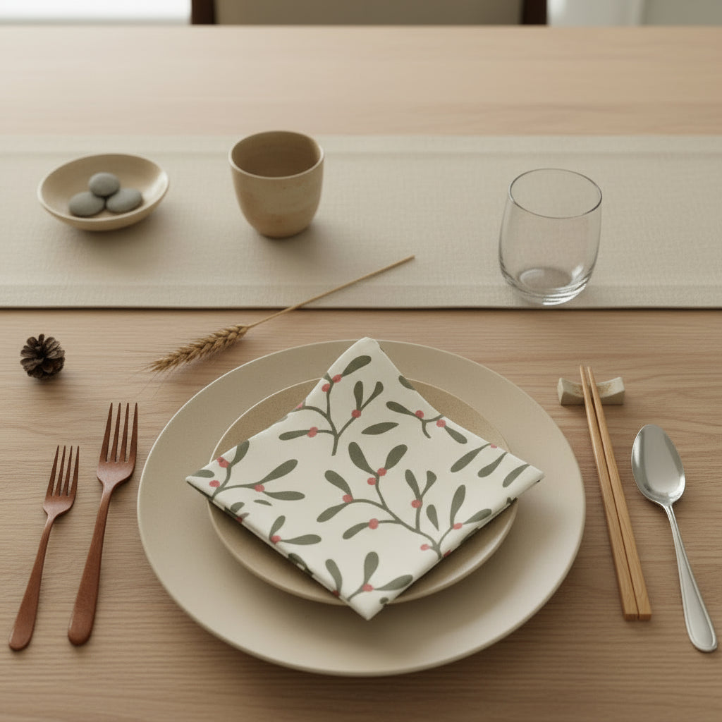 These napkins artfully blend tradition with a contemporary spirit. Designed to be as versatile as they are stylish, each napkin in the collection features carefully crafted motifs that capture the warmth and joy of the holiday season, making them an ideal companion for any Christmas table.