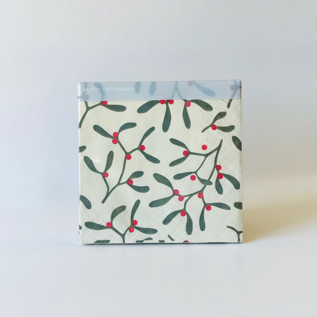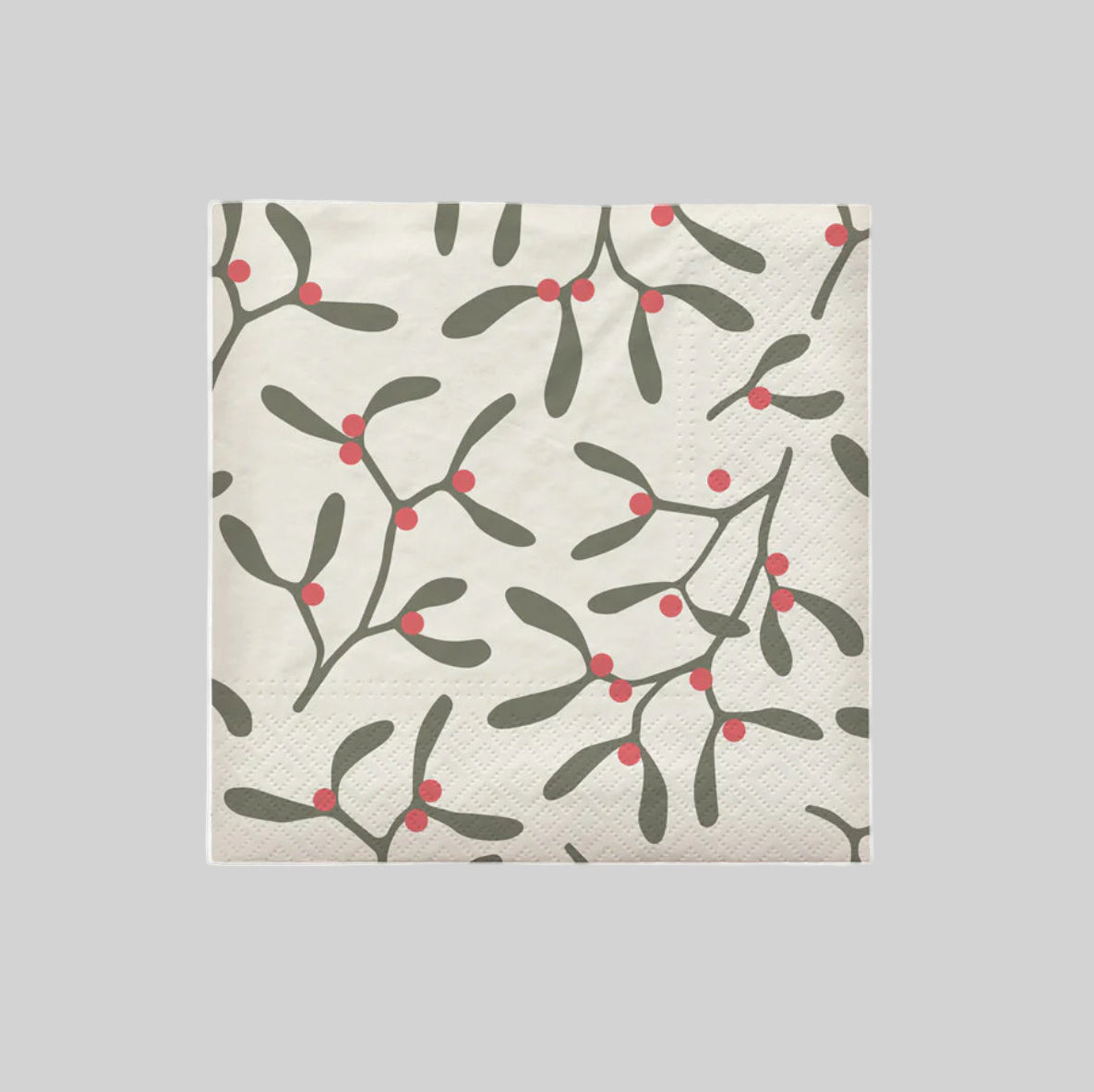 Red & Green Christmas Mistletoe paper napkins - Pack of 12