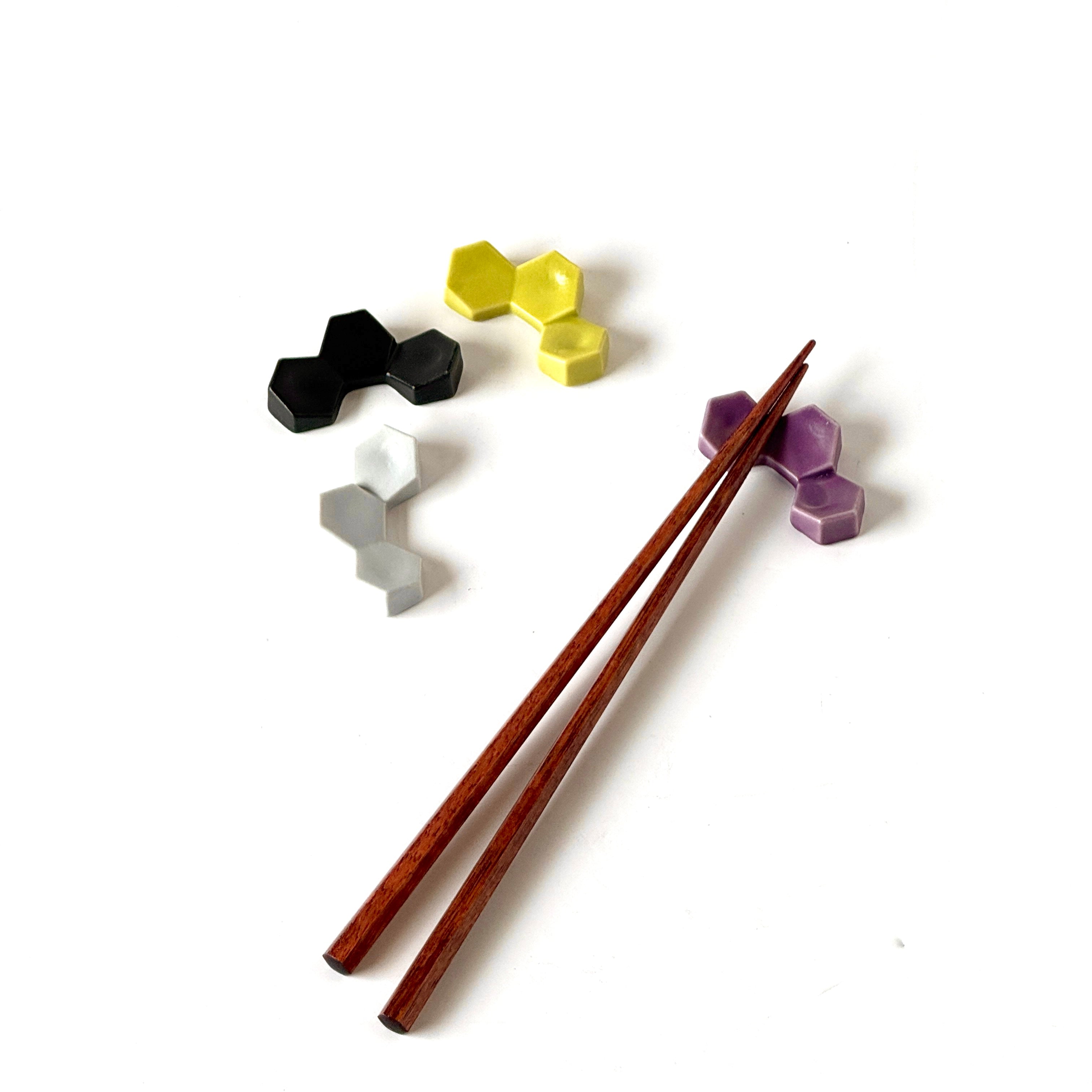 Crafted from natural wood, these chopsticks offer a warm, authentic feel that complements any table setting. The distinctive black hexagonal chopstick rest adds both functionality and visual appeal, keeping your chopsticks elevated and protected between bites. Made from natural wood, the chopsticks feature non-slip tips and are dishwasher safe, ensuring both beauty and convenience for everyday use.