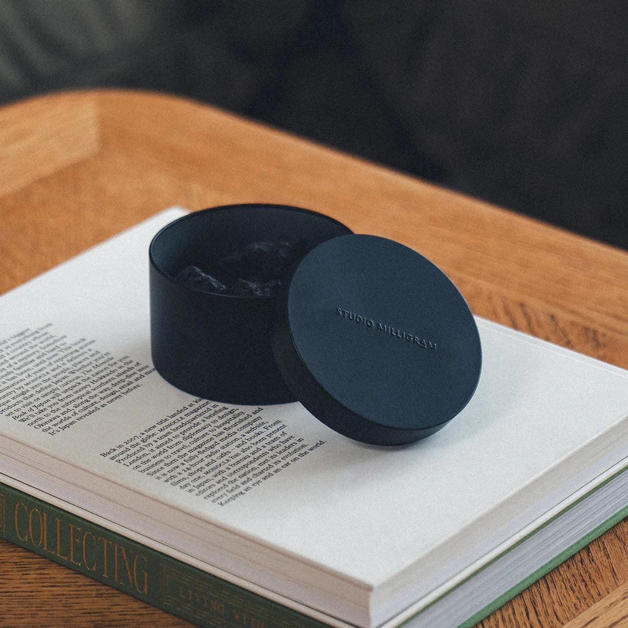 Locally sourced volcanic scoria is bathed in Studio Milligrams unique Australian made fragrances and packaged in a sleek black metal tin with lid. Enhance the fragrance by adding 3-5 drops directly to rocks as desired.