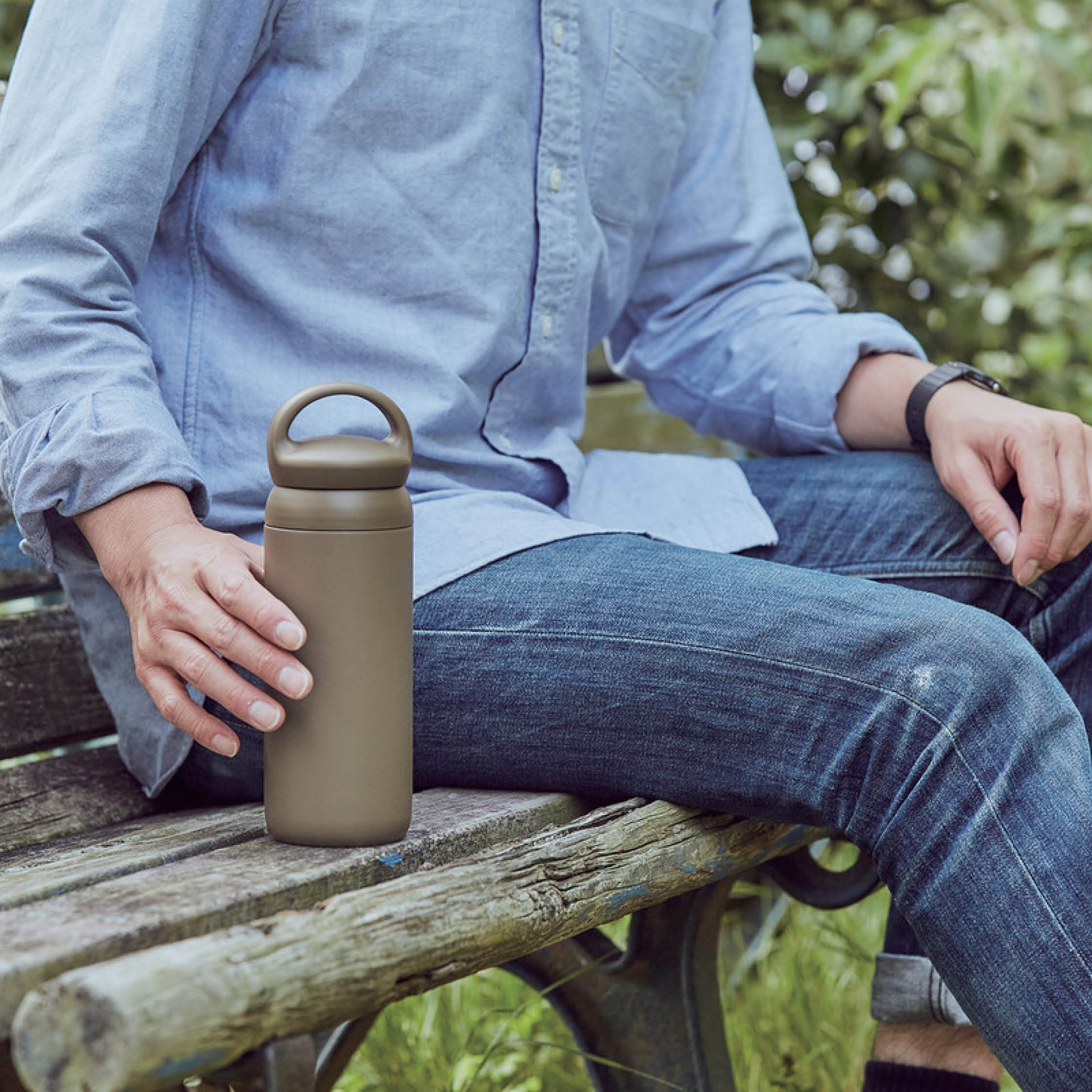 Kinto's Day Off Tumbler is designed for a relaxing yet active day off. Vacuum insulated, it retains the temperature and flavour of drinks for a long time. With a rounded handle that is comfortable to hold, it is perfect for carrying around on walks or day trips. Take a stroll or go on a short trip, carrying only what you need and a tumbler filled with cool water. The comfortably fitting handle supports you on the go as well as during your relaxation.