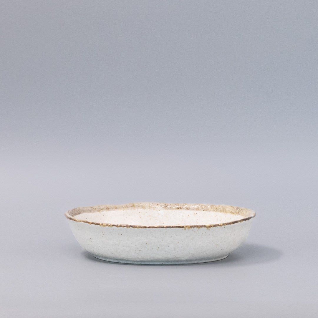 Featuring a natural honey gloss glaze with a speckled brown edge. Made of 'Minoyaki' porcelain, fired at a high temperature and hand finished in Japan.