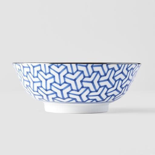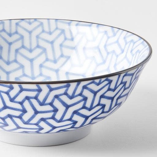 Featuring a traditional Japanese Ikat herringbone pattern in a bold and bright indigo blue on a gloss white glaze. Made of 'Minoyaki' porcelain, fired at a high temperature and hand finished.