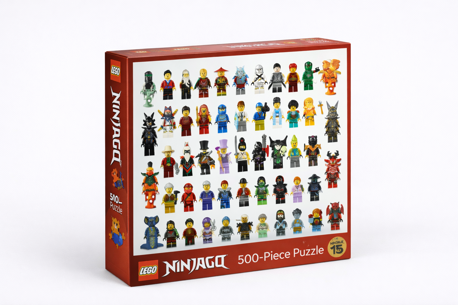 Celebrate the world of LEGO® NINJAGO® with a 500-piece jigsaw puzzle featuring fan-favorite minifigures from fifteen years of storytelling.