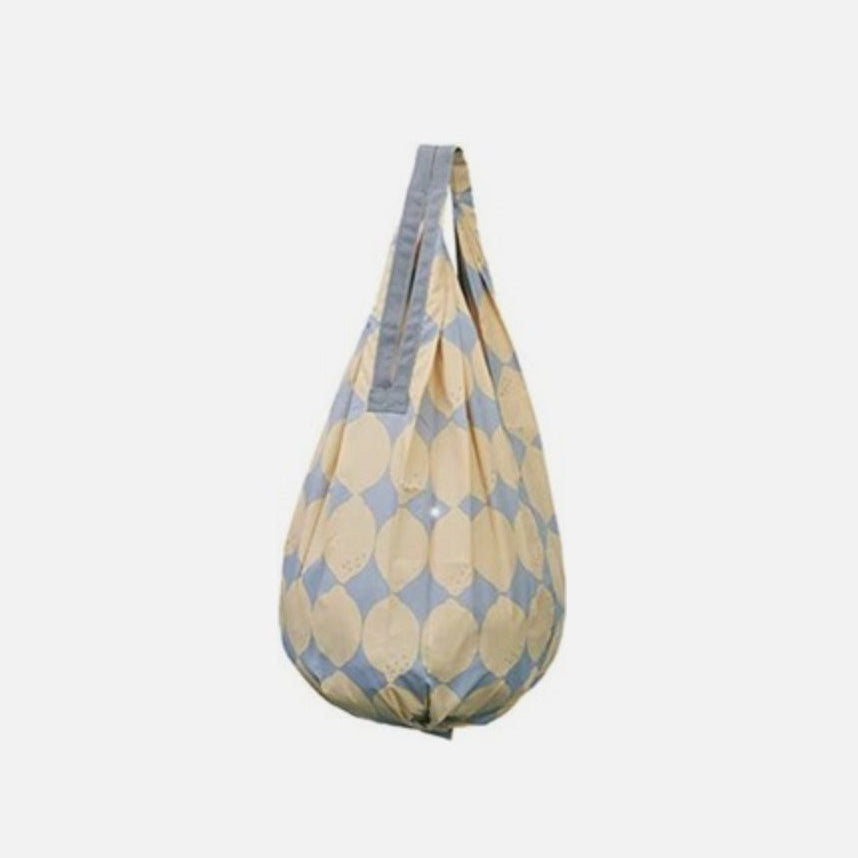 Shupatto Drop is a drop-shaped vertical version of our original Shupatto, folding down into a slim flat square that fits easily into your handbag. Gives you an extra length to easily carry a wine bottle, bread, and any vegetable with that length.