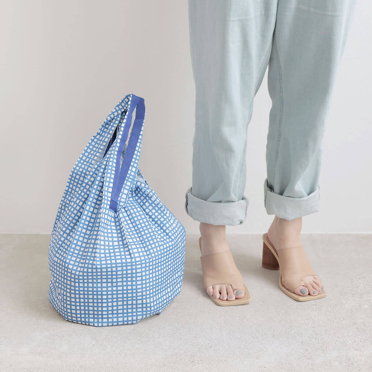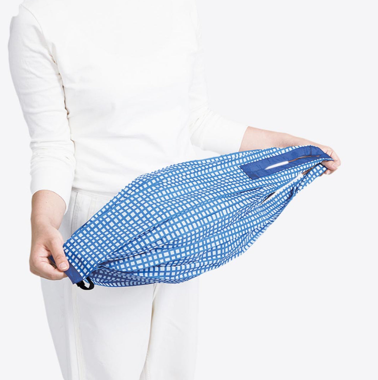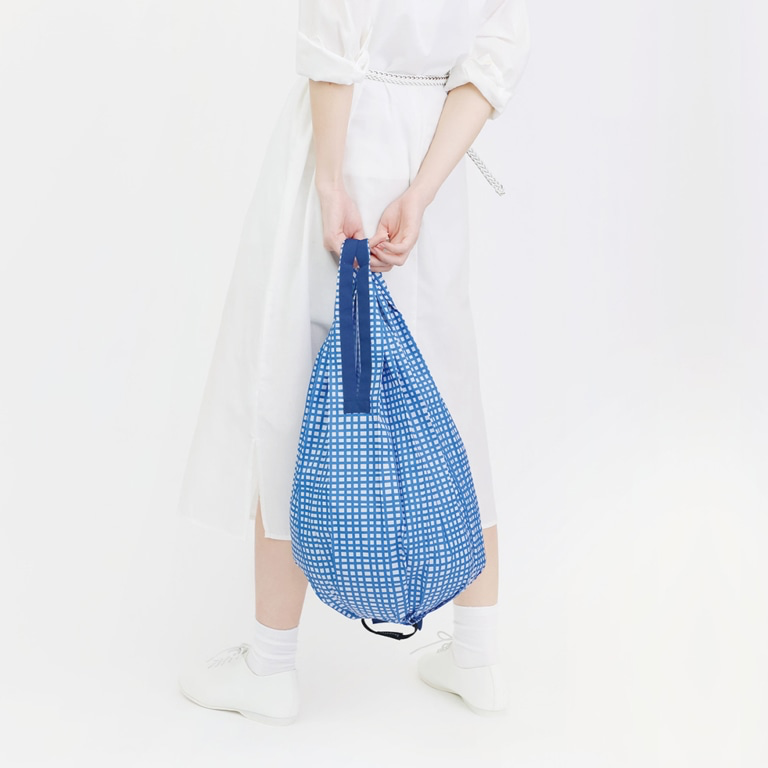 Shupatto Drop is a drop-shaped vertical version of our original Shupatto, folding down into a slim flat square that fits easily into your handbag. Gives you an extra length to easily carry a wine bottle, bread, and any vegetable with that length.