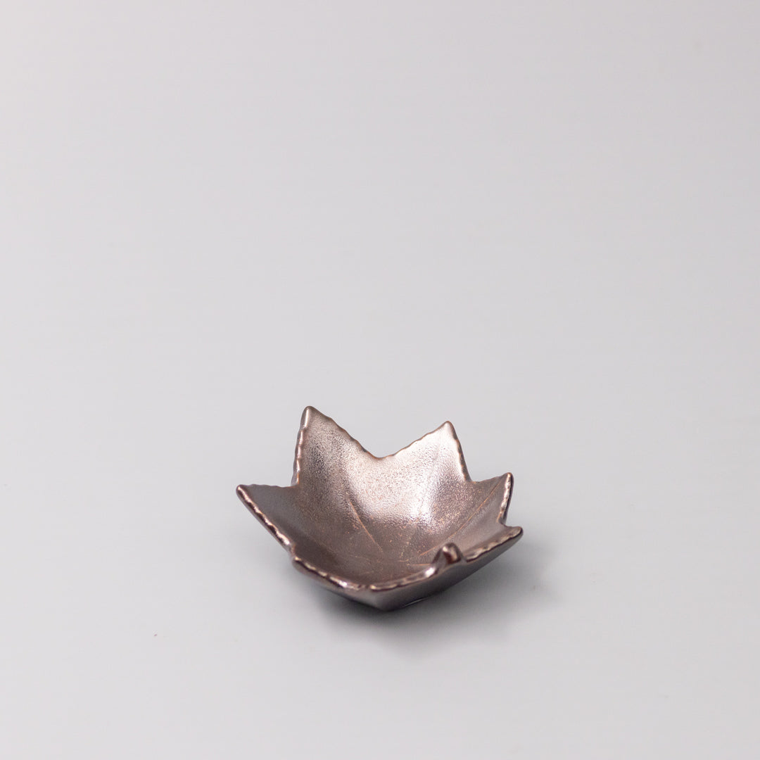 Featuring a delicate hand crafted Maple leaf shape sauce dish in a beautiful metallic glaze. Made of 'Minoyaki' porcelain, fired at a high temperature and hand finished.