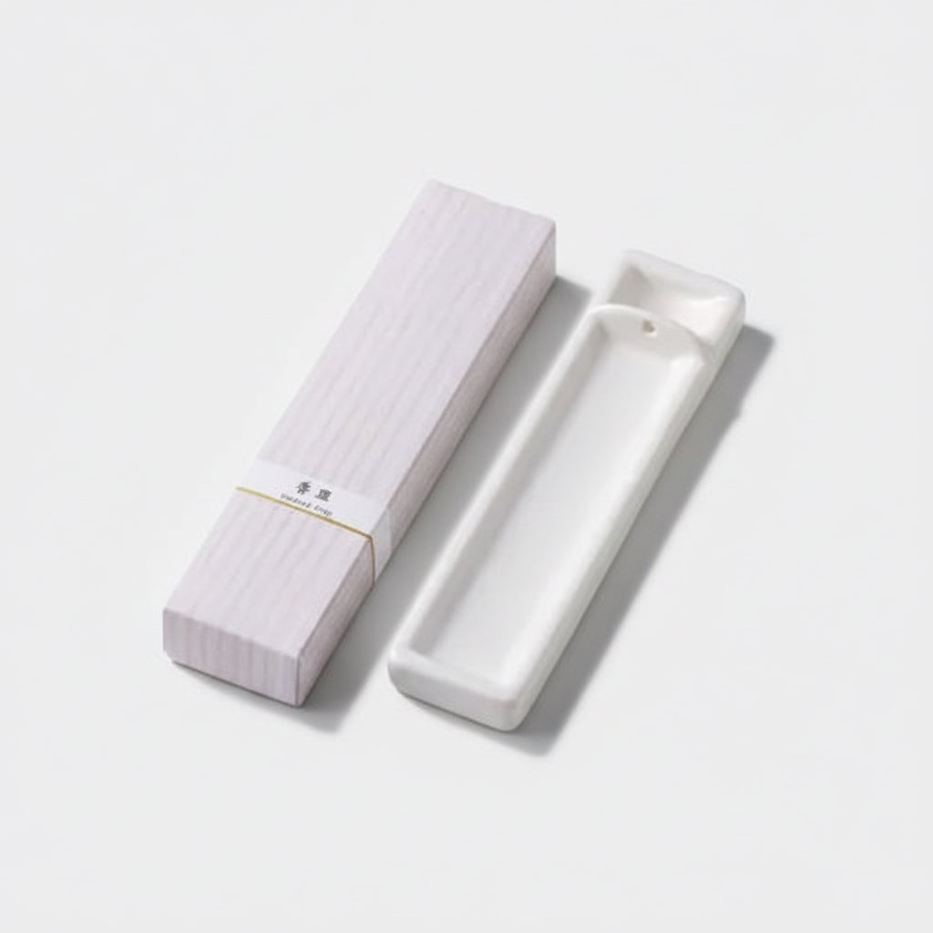 Long incense holder in white by Kousaido