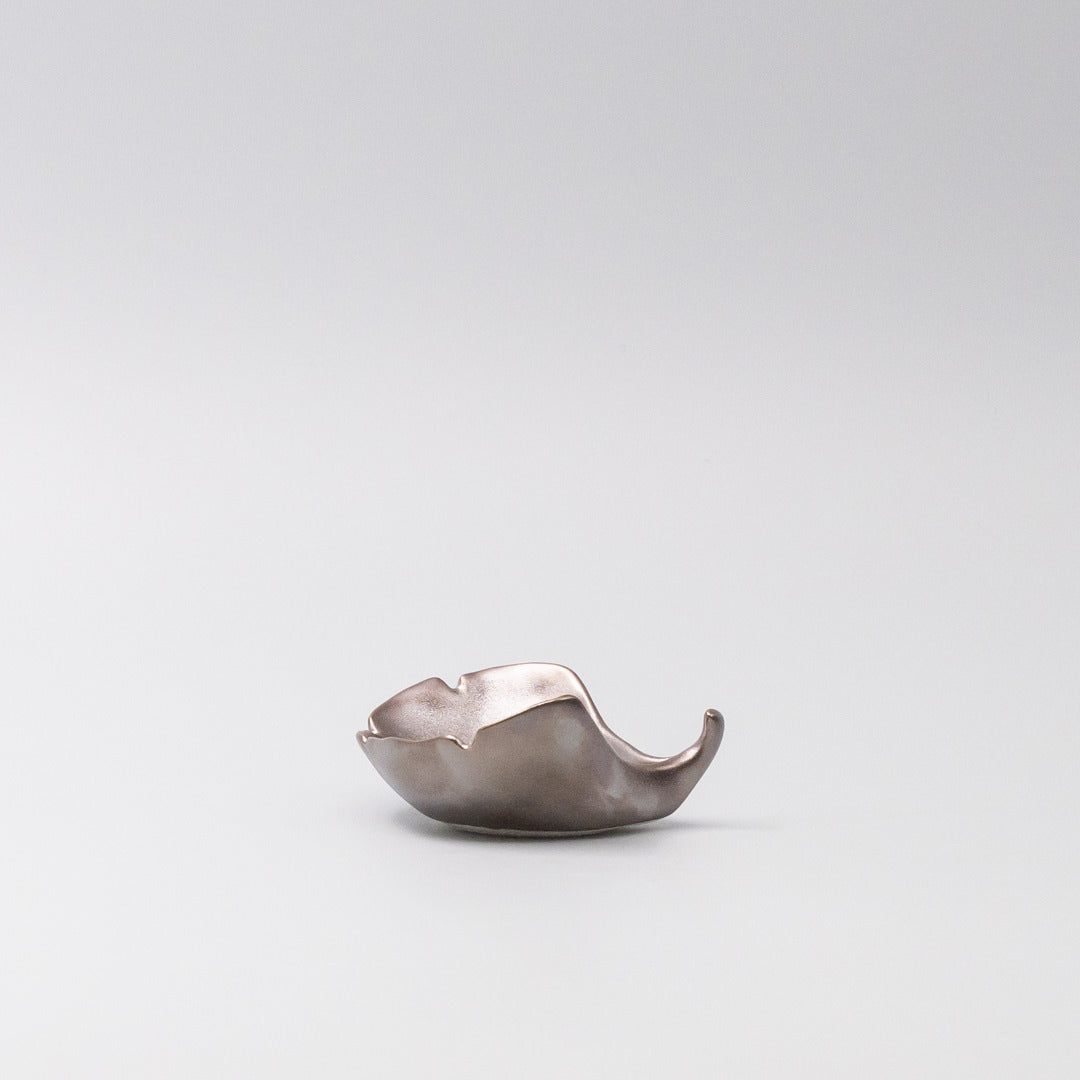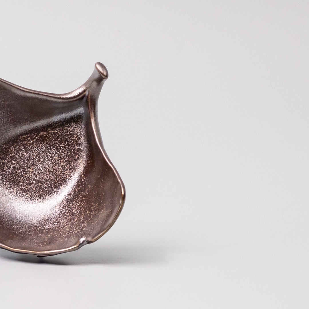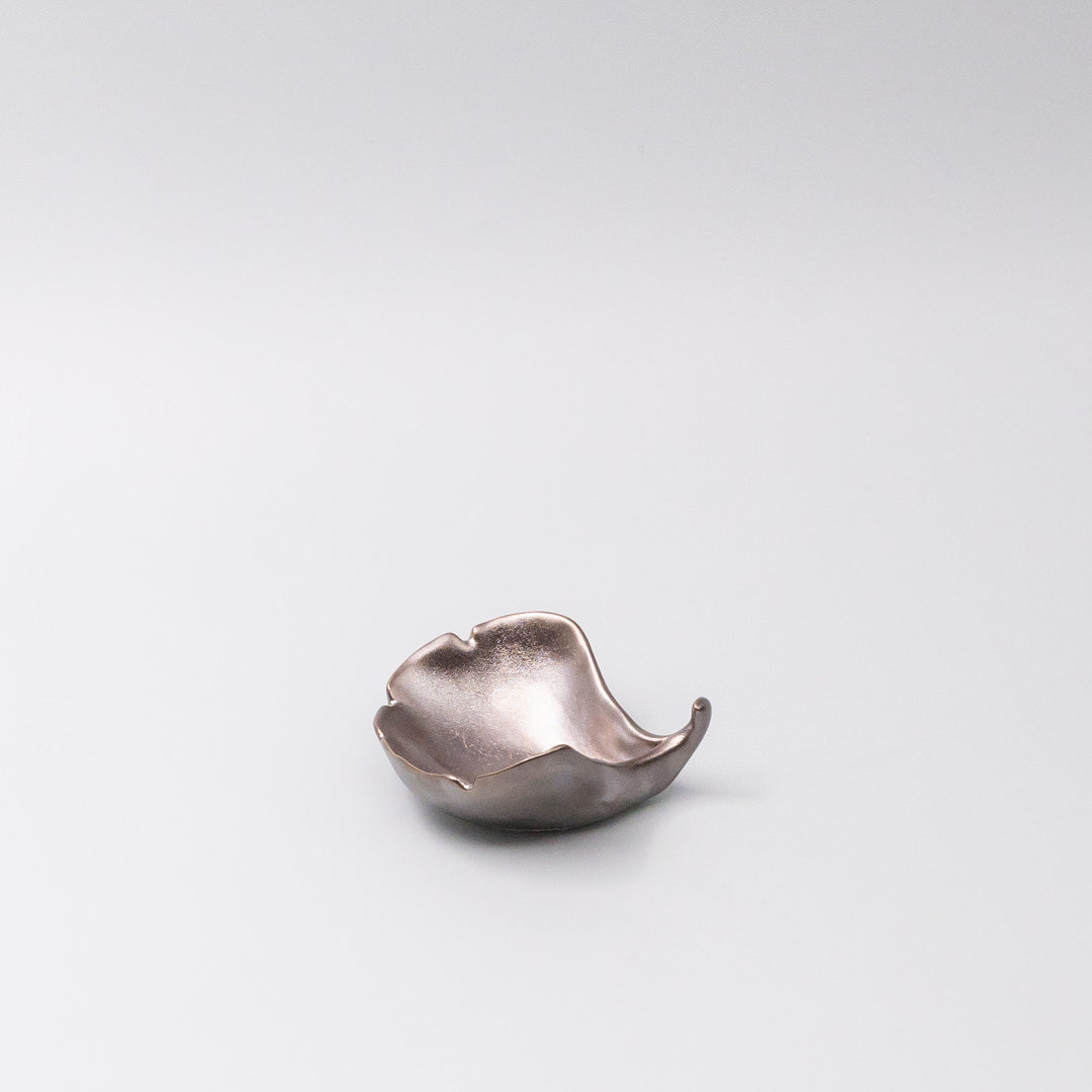 Featuring a delicate hand crafted Gingko leaf shape sauce dish in a beautiful metallic glaze. Made of 'Minoyaki' porcelain, fired at a high temperature and hand finished.
