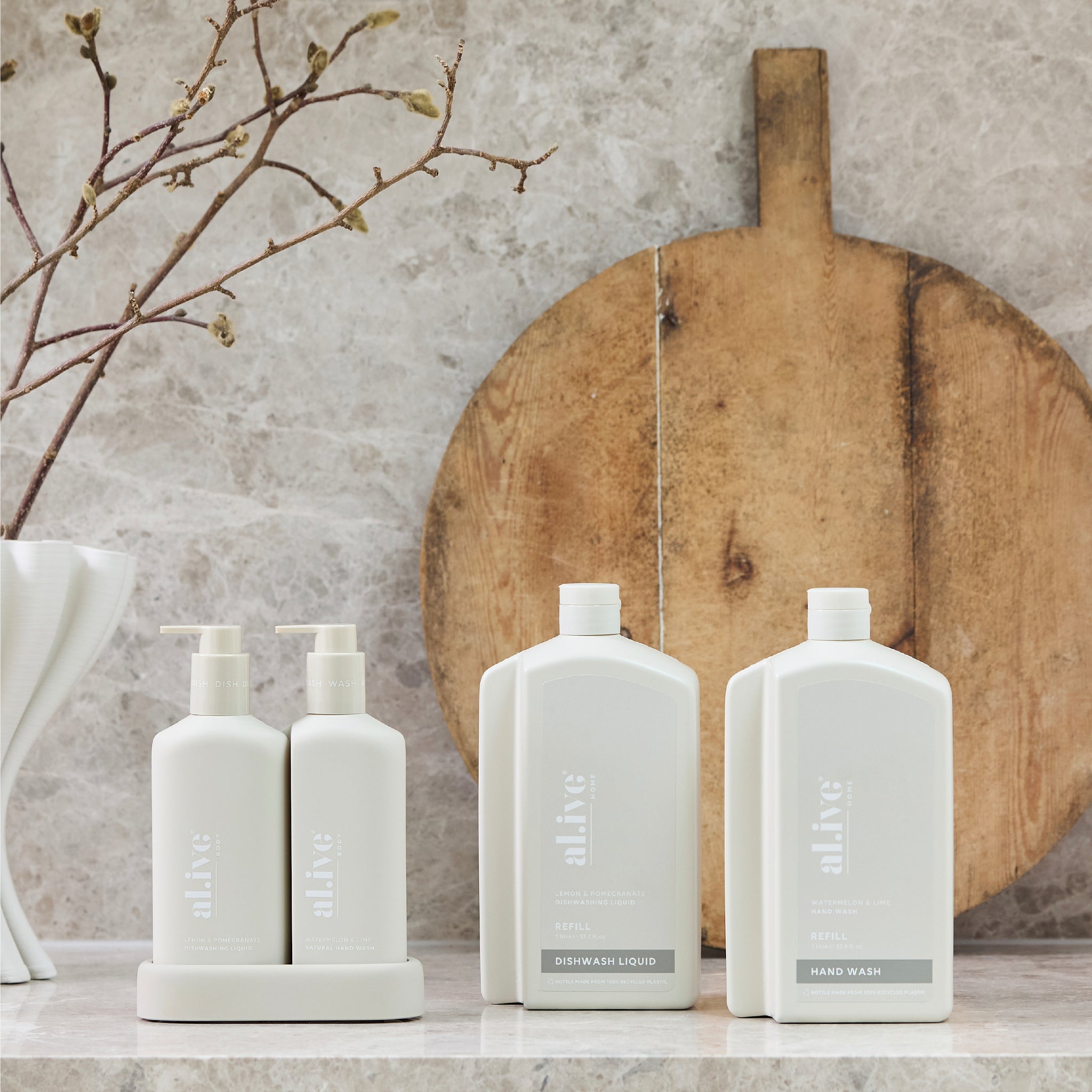 Each refill is designed to refill the 300 ml al.ive body Hand Wash bottle over three times. Featuring a a controlled-flow spout for mess-free pouring, compact shape for easy storage, and full kerbside recyclability, it offers a practical, premium solution while extending the life of the product your customers already love.