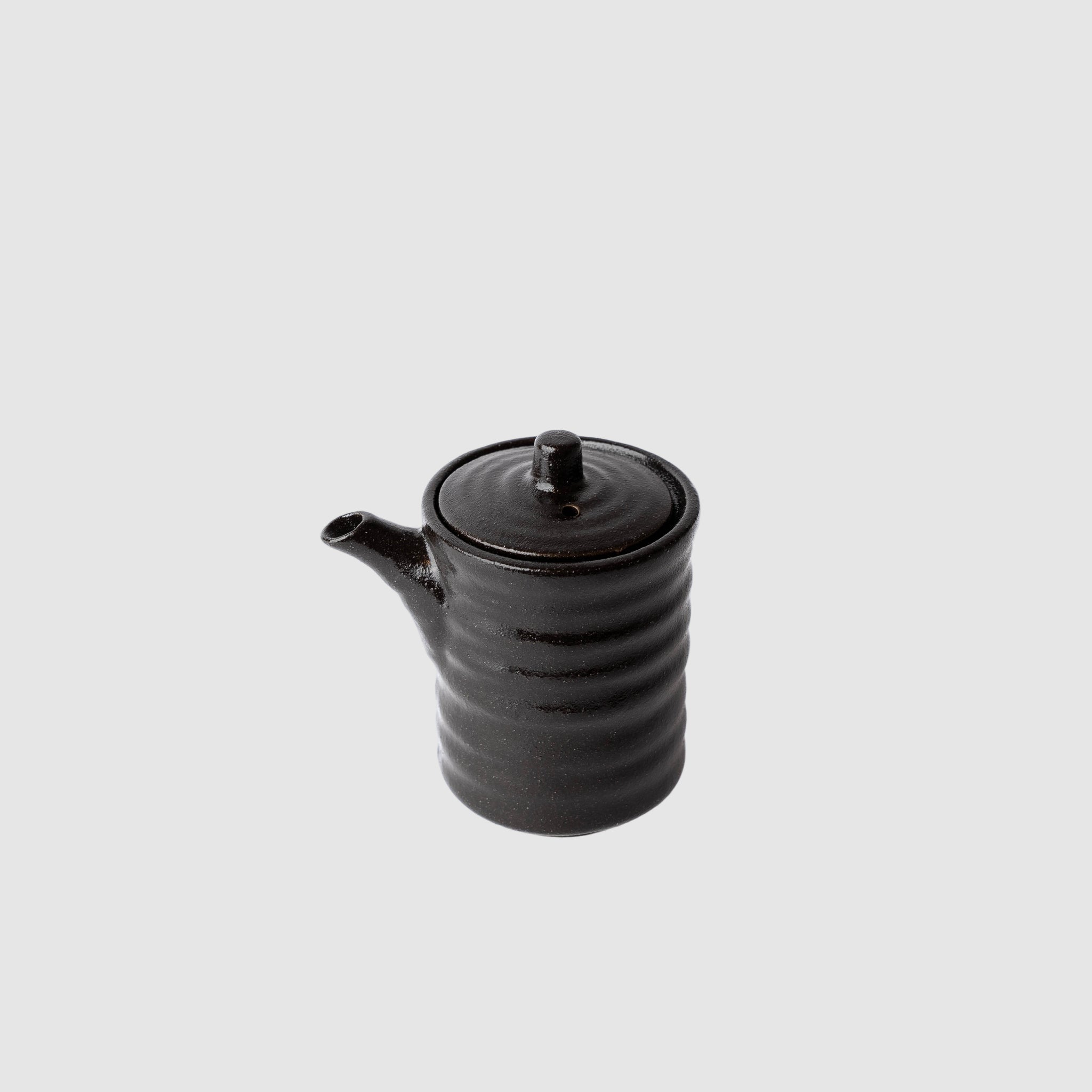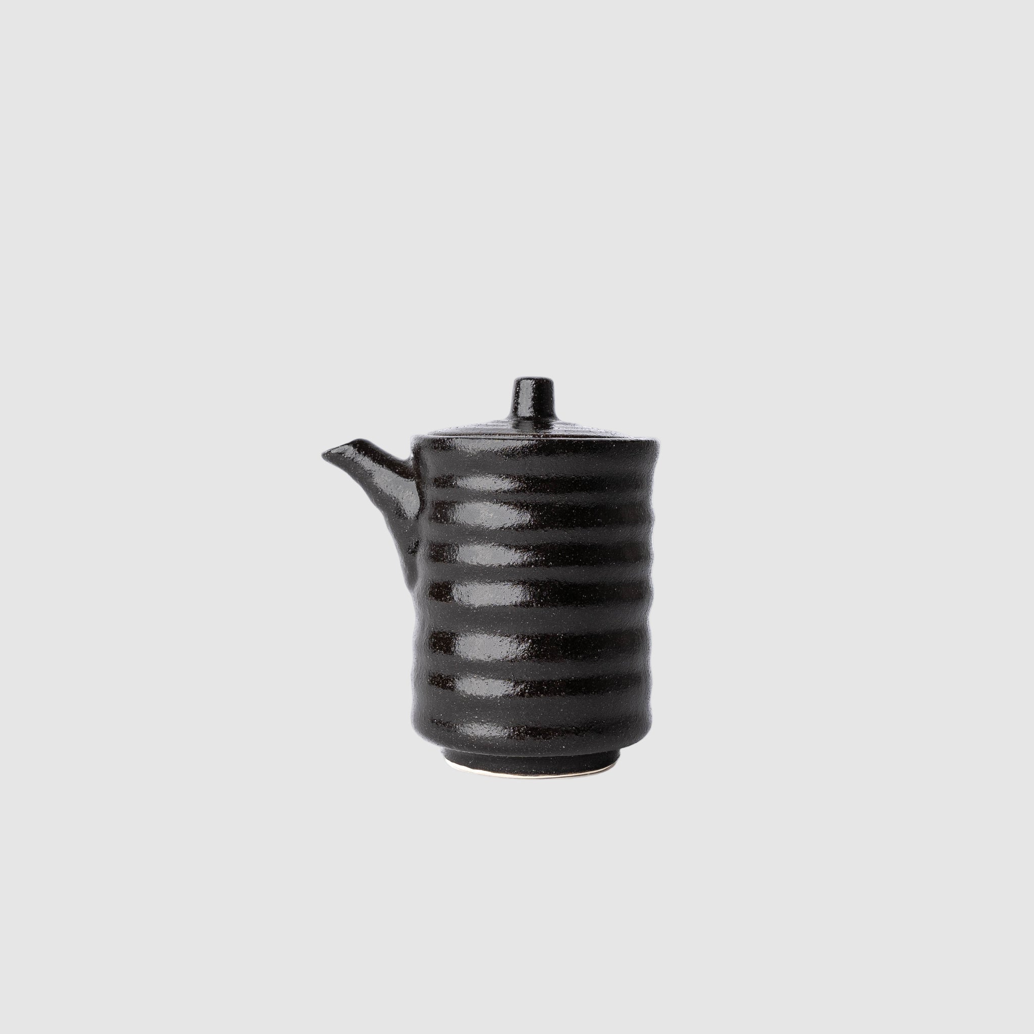 Featuring a ribbed black glaze. Made of 'Minoyaki' earthenware, fired at a high temperature and hand finished in Japan.
