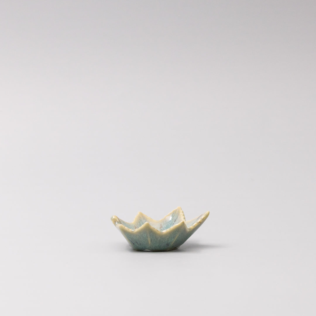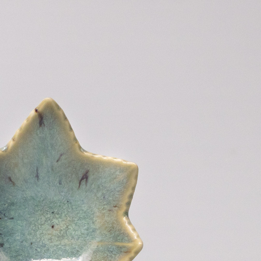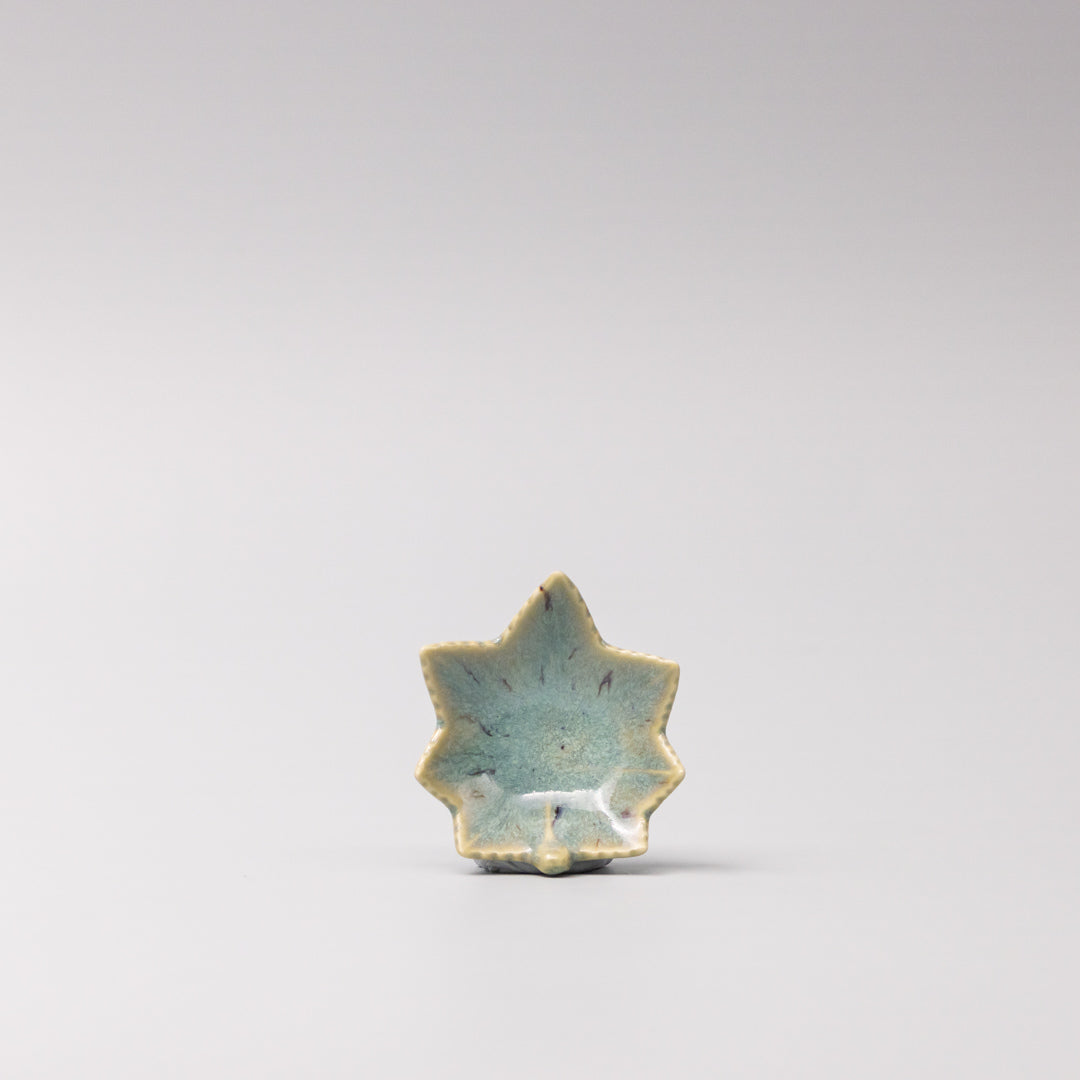 Featuring a delicate hand crafted Maple leaf shape sauce dish in a beautiful mint green glaze. Made of 'Minoyaki' porcelain, fired at a high temperature and hand finished.