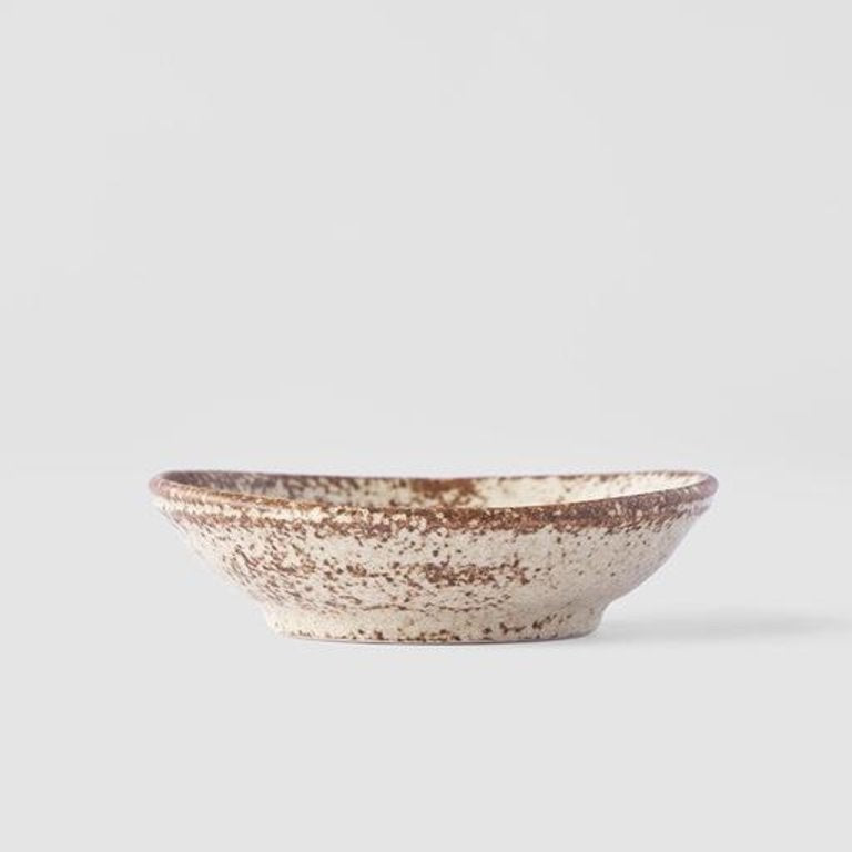 The Sand Fade Glaze features a warm, sandy tone with touches of hazel brown. Each piece has a unique speckled pattern determined by its position in the kiln during the firing process. Made of 'Minoyaki' porcelain, fired at a high temperature and hand finished in Japan.