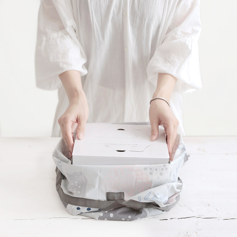 Shupatto Drop is a drop-shaped vertical version of our original Shupatto, folding down into a slim flat square that fits easily into your handbag. Gives you an extra length to easily carry a wine bottle, bread, and any vegetable with that length.
