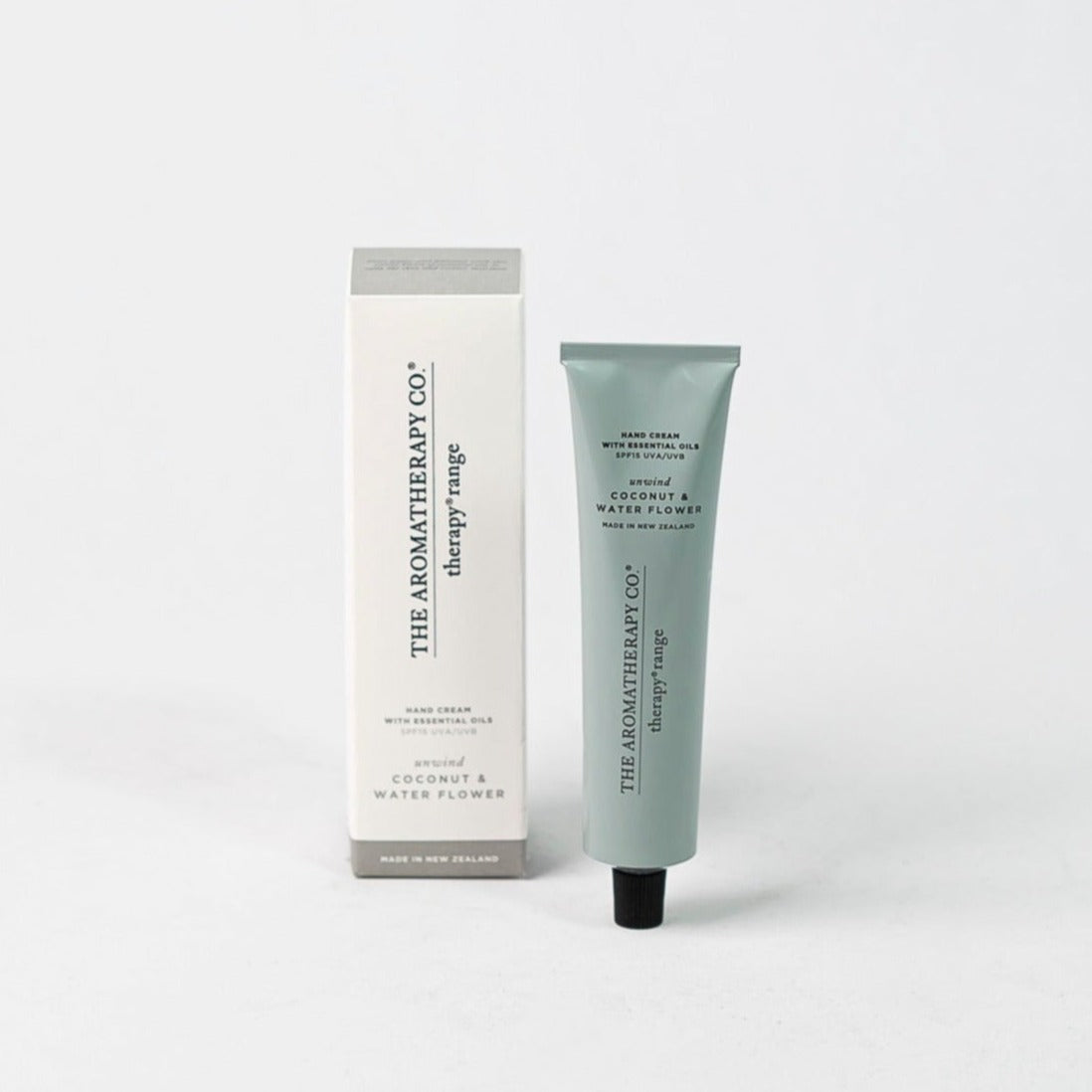 Therapy Unwind Hand Cream in coconut and water flower by The Aromatherapy Co.