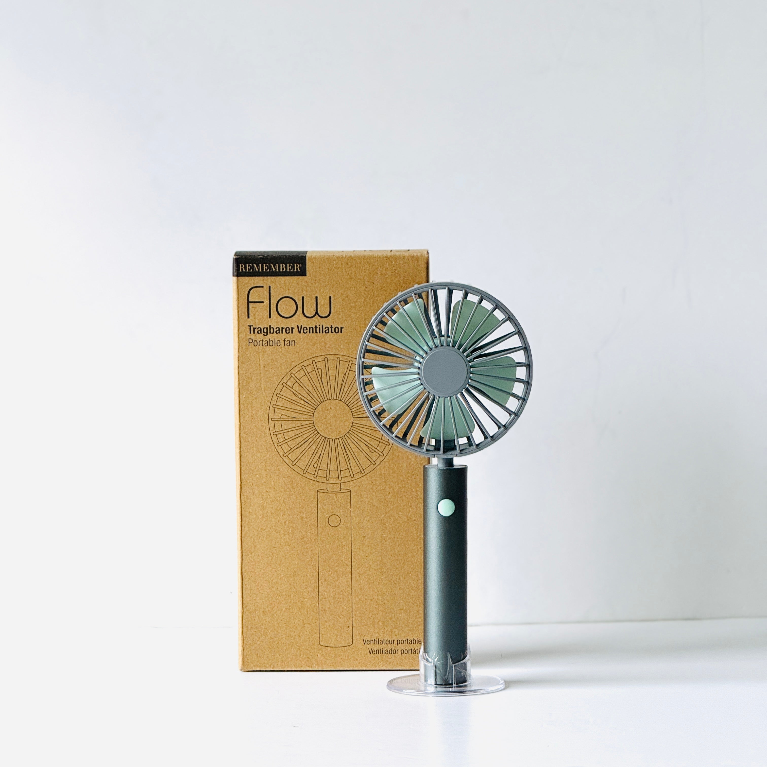 With a stand and a hand strap, flow always provides a cool breeze when you need one, whether sitting/sweating at your desk or standing in the underground. It is easy to charge with the USB cable provided.