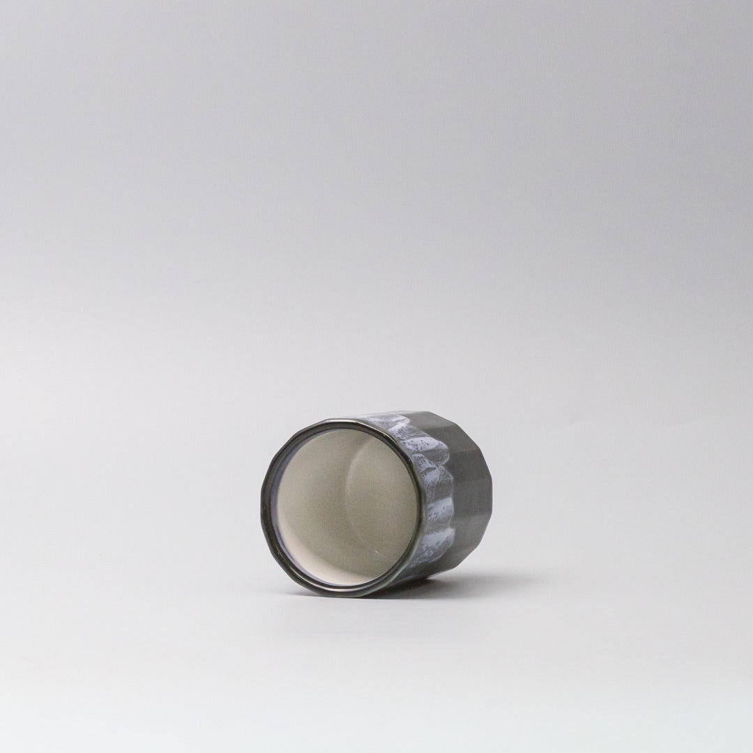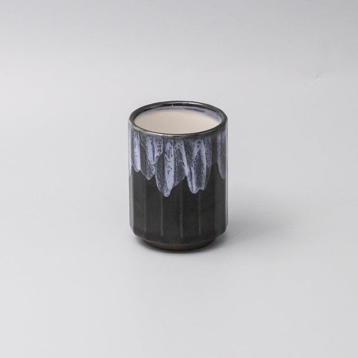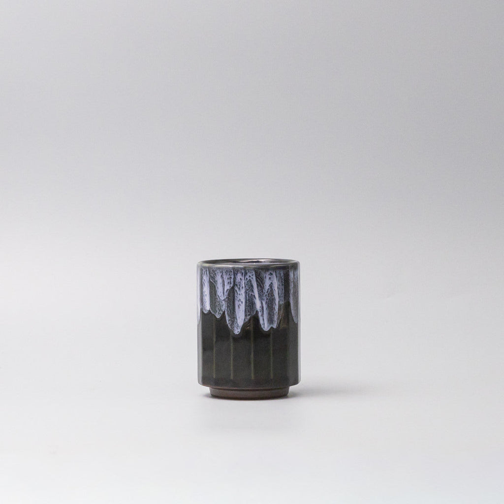 Featuring a black ridged mug with forest white drip. Made of 'Minoyaki' porcelain, fired at a high temperature and hand finished at a long-standing family run kiln in Japan.